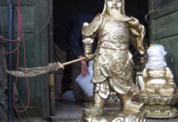 宗教寺廟銅雕拿刀的關公雕塑