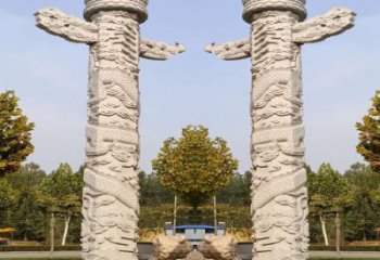 漢白玉華表雕塑,點綴農村廣場
