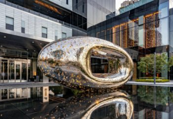 這件不銹鋼景觀雕塑以 “雙葫納福” 為核心意象,將傳統(tǒng)吉祥符號(hào)與現(xiàn)代材質(zhì)語言有機(jī)融合。主體為大小兩只葫蘆,取 “福祿雙全、福壽綿長” 的諧音寓意,呼應(yīng)中國傳統(tǒng)文化中對(duì)圓滿與安康的精神追求。雕塑采用鏡面不銹鋼鍛造而成,金屬質(zhì)感在自然光下呈現(xiàn)出冷峻而靈動(dòng)的視覺張力,既契合現(xiàn)代公共空間的審美語境,又通過流暢的曲線造型,還原了葫蘆圓潤飽滿的自然形態(tài)。葫蘆表面以紅色浮雕工藝,分別鐫刻 “福” 字團(tuán)紋與百壽篆字,在銀白底色的映襯下格外醒目,強(qiáng)化了福壽主題的表達(dá)。作為一件景觀雕塑,它不僅是公共空間的視覺焦點(diǎn),更通過符號(hào)化的設(shè)計(jì)語言,將傳統(tǒng)福文化轉(zhuǎn)化為當(dāng)代審美體驗(yàn),讓觀者在日常場景中感知到文化傳承與精神慰藉。